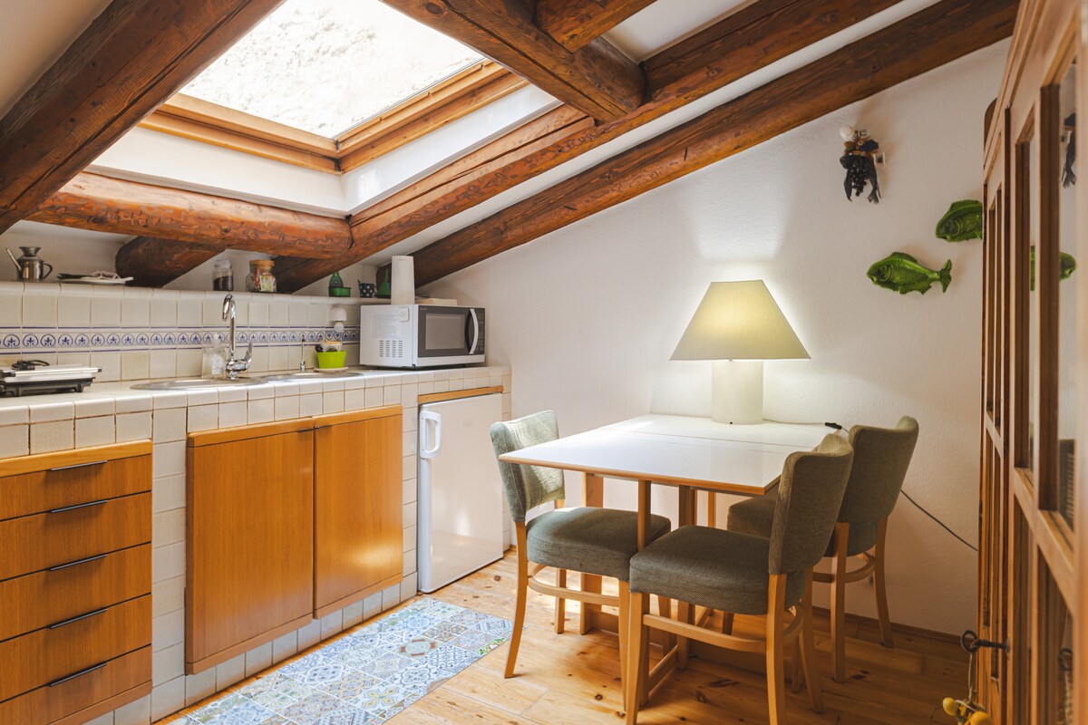 Stunning, over 100 years old stone barn, meticulously renovated, furnished with vintage pieces, located in a peaceful village in the middle of the upcoming Slovenian wine region. The fully furnished kitchen with all amenities and dining table area is located at the entrance, while the sleeping premises (one queen size bed and day-bed sofa for 2 and bathroom with a bathtub are on the upper level in an open-space attic. Free parking, Wi-fi coverage, AC, fan, autonomous entrance and garden access.