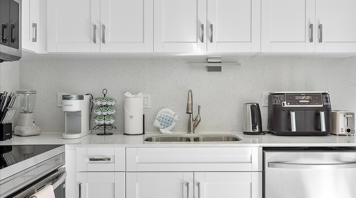 Welcome to your laid-back beach retreat! Our completely remodeled 250 sq ft studio is filled with bright, natural light and relaxing beach vibes, located just a short walk from a quiet beach. After a sun-kissed day, unwind in front of the state-of-the-art Smart TV. The modern bathroom features a refreshing rainfall showerhead and a unique pebble-stone floor. For your convenience, the studio includes a mini kitchen, dedicated workspace, toys for kids and is fully stocked with beach essentials.