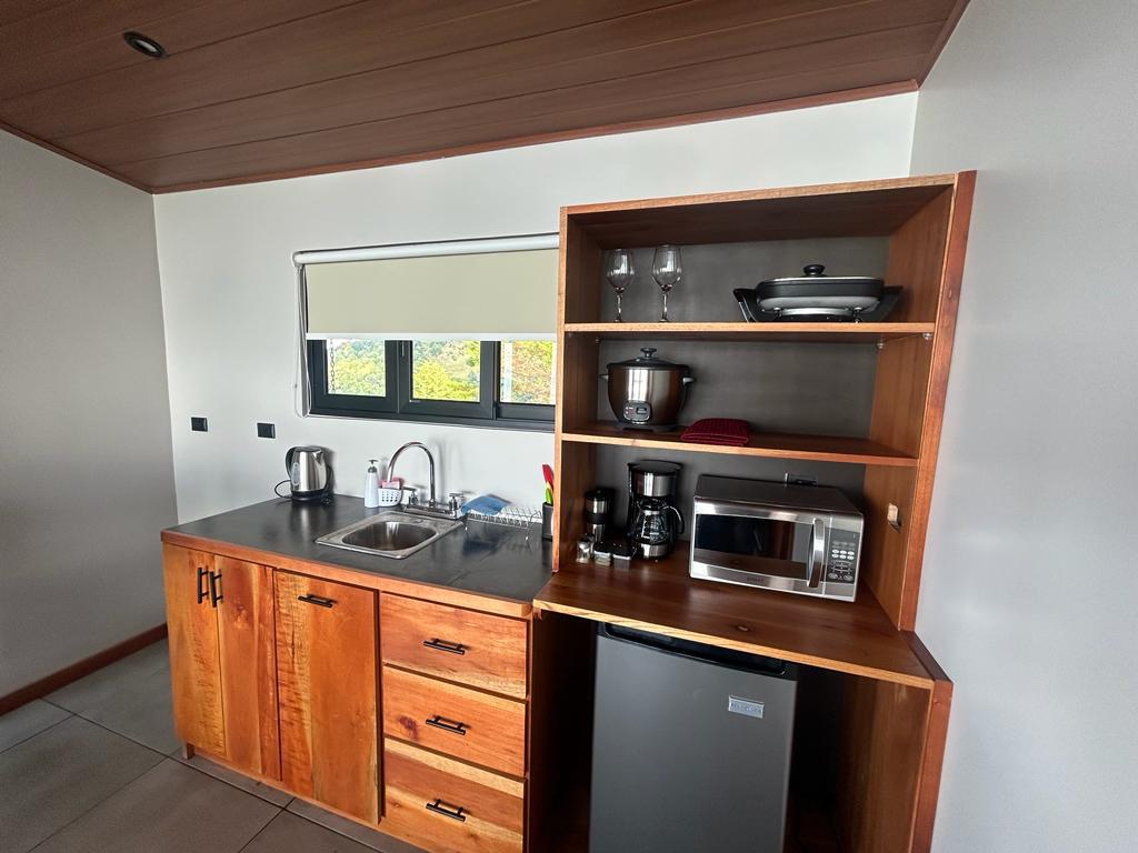 The Suave Vida Getaway Guesthouse offers you its openness with window walls and valley views surrounded in Costa Rican Nature at its purest. You will feel emerged to the views of the valley in a comfortably spacious open space enriched with stylish furniture and décor themed to bring raw elements of nature inside the living area. You will find yourself in tranquility with the sounds of nature and the running streams.