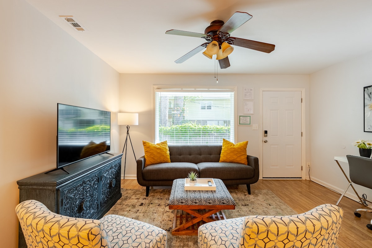 The Oasis is a beautiful and comfortable townhome in Charleston, SC. This 2 bedroom, 2.5 bath sleeps 7 people! The airport, beach, downtown, golf courses, & concert venues are all approx. 20 min away. After enjoying Charleston's restaurants, tours, shops, beaches, golf, & entertainment, relax at The Oasis w/ 3 Roku TVs (70", 43", 43"). Drift off to dreams w/ King, Queen, Twin Loft, & Queen Sleeper Sofa options. Also enjoy a fully equipped kitchen. There is pool access in warmer weather.
