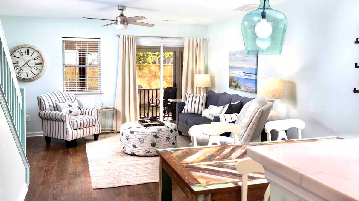 The Oasis is a beautiful and comfortable townhome in Charleston, SC. This 2 bedroom, 2.5 bath sleeps 7 people! The airport, beach, downtown, golf courses, & concert venues are all approx. 20 min away. After enjoying Charleston's restaurants, tours, shops, beaches, golf, & entertainment, relax at The Oasis w/ 3 Roku TVs (70", 43", 43"). Drift off to dreams w/ King, Queen, Twin Loft, & Queen Sleeper Sofa options. Also enjoy a fully equipped kitchen. There is pool access in warmer weather.