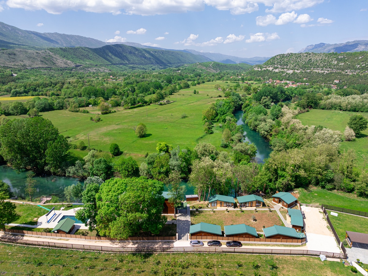 Ovaj jedinstveni smještaj ima vlastiti stil. U okruženju starinskog crnogorskog ogništa, ambijentu stvorenom od tradicionalnih materijala dominira stara cigla, drvo i nepečena zemlja koja daje izvanrednu toplotnu izolaciju a stare stvari ambicioznog kolekcionara podsećaju na prošla vremena kada se živelo sporije ali sadržajnije. Čitavo okruženje je posvećeno onima koji vole prirodu, poj ptica i šuštanje bambusovih stabljika na vetru. Ultra brzi internet 160Mbps idealan za digitalne nomade!