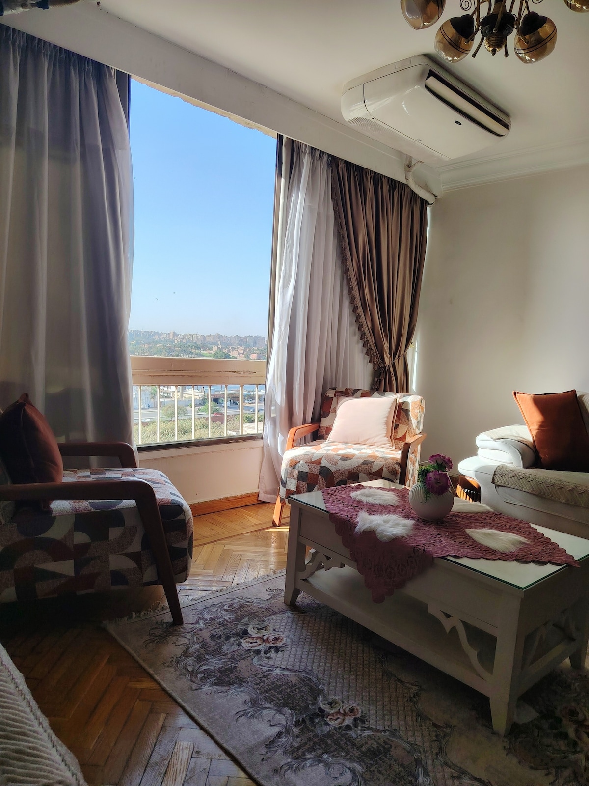 Your family will be close to everything when you stay at this centrally-located place.Welcome to The Nile Retreat— a luxurious riverside apartment offering breathtaking panoramic views of the majestic Nile, with the iconic Pyramids and Cairo Citadel visible on the distant skyline. Elegantly furnished with high-end décor and modern comforts. Minutes away from most of Cairo iconic and historical landmarks,you can even spot them from your window at the 15th floor.