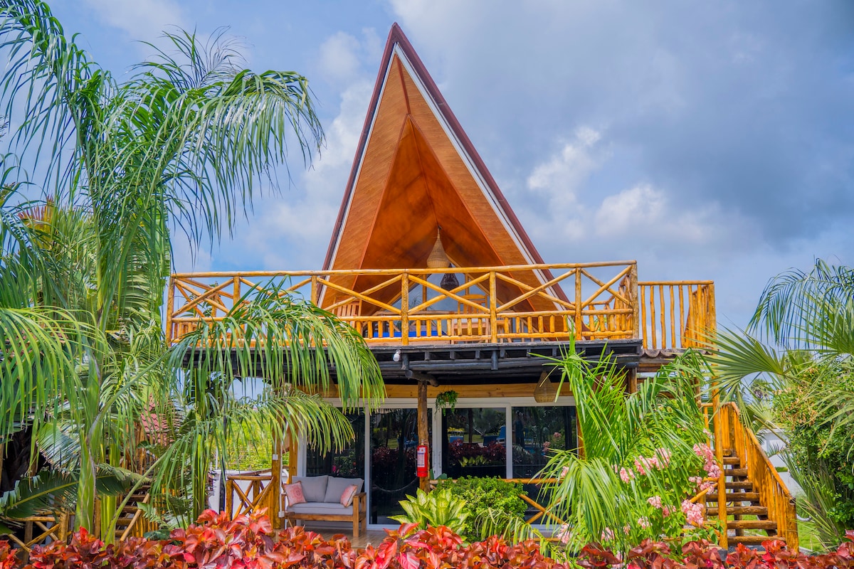 Retreat to The Hideaway, a spacious two-story loft cabin nestled amidst the tranquil surroundings of The Overhang. With three bedrooms and two bathrooms, including a stunning outdoor bathing experience, this retreat offers comfort and rustic charm. Step onto your private balcony to soak in views of the Indian Ocean, or gather in the communal living space for quality time with loved ones.