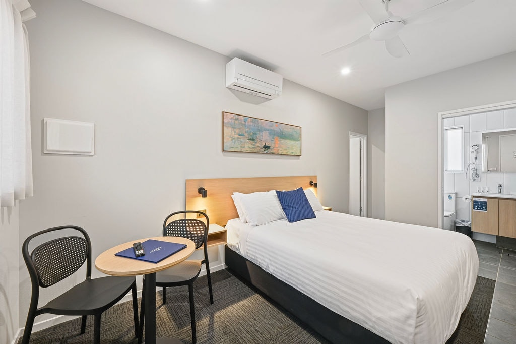 Our well-appointed Studio apartments at Toowoomba Central Plaza are the perfect space to stretch out to work or relax in affordable comfort. Bedrooms offer a comfortable queen bed, an ensuite bathroom with amenities and a hair dryer. Images are indicative only - room availability is subject to change as we are a hotel. Note if you wanted to split beds (from a 1 queen to 2 singles) there is a fee of $30