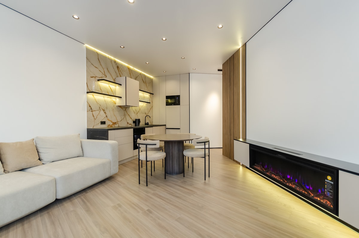 This modern apartment is made with quality materials and thought throughout every detail. Located in a quiet area, yet steps away from Pechersk attractions, cafes and bars, a big supermarket, and close to two large parks with a scenic river view and great for morning jogging.