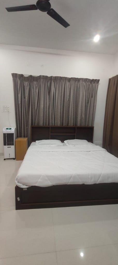 Welcome to your home away from home! This stylish and spacious 3-bedroom apartment is located in the heart of Shimoga, The apartment features a fully equipped kitchen, a cozy living room with a smart TV, and a private balcony with beautiful city views. High-speed Wi-Fi and air conditioning are included for your comfort. Perfect for families, friends and travelers, – this apartment offers everything you need for a relaxing and convenient stay.