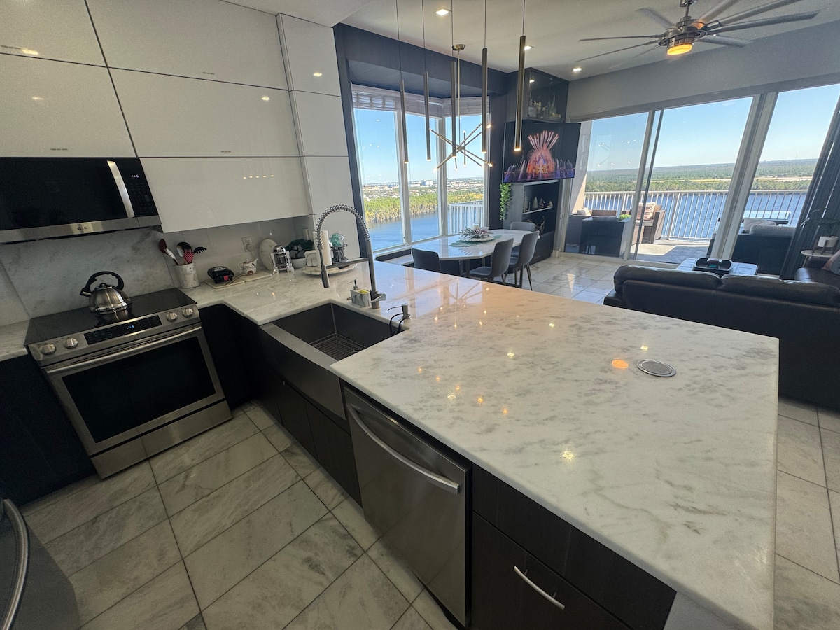 BRAND NEW completely renovated 2Bd 2Ba 21st Flr PENTHOUSE. Direct & Private Disney Fireworks Views from w/in comfort of Stunning Condo. Beautiful Resort w/ pools, gym, walking dock etc. Even has a STARBUCKS right downstairs! 10mins to WDW & very close to all other major attractions. LuxKitchen, LR w/ Leather Sofabed, MBD w/ sitting area & 80”TV! 2nd Bd w/ full & twin size BB’s. 2 PRIVATE BALCONIES facing Disney & Lake. MBR Spa Shower w/ 2 Rainshower heads, wall jets. 2nd Bath w/ Jacuzzi Tub.
