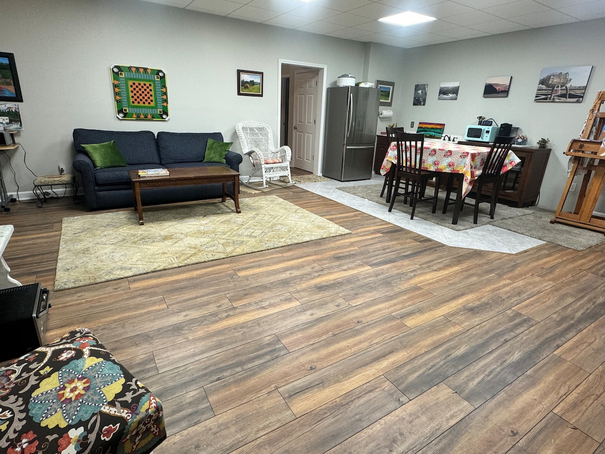 Have fun with the whole family at this stylish apartment situated on a beautiful 3.5 acre property! Massive walk in tiled shower with multiple shower heads. Friendly dogs allowed for $35 a dog. No more than 2 dogs. Must be left in a crate if left in apartment alone. We have a large crate available to use. We have a SUPER friendly 2 year old poodle/border collie mix that will greet you!