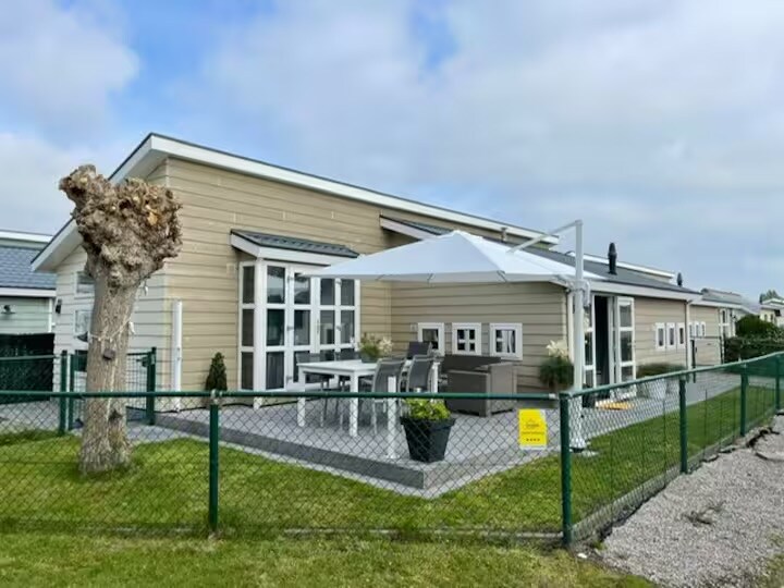 - Great vacation bungalow, on the edge of a vacation park with numerous other bungalows. - The garden is directly adjacent to a field with unobstructed and spacious views over the countryside. - It is a quiet complex with a central location. - 2 free bicycles available - Easy to get to the coast on foot or by bike. - A maximum of 2 medium-sized pets are allowed (with a surcharge). - 1 private parking space (outside) included, at 200-500m from the house there are also charging stations - You can check in on your own upon arrival