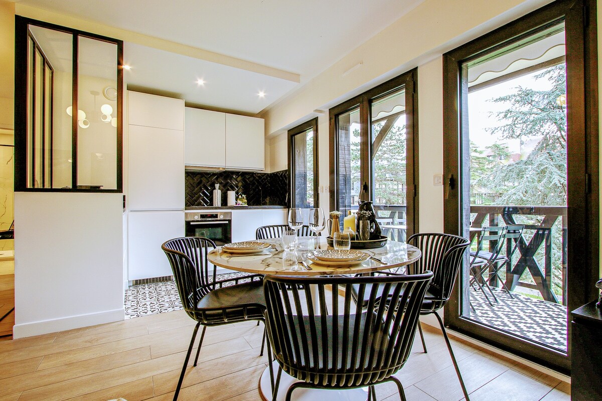 Escape to our radiant duplex apartment located in the heart of Deauville! Fully renovated in November, enjoy this lovely well-equipped 40m² flat boasting 2 en-suite bedrooms and an exquisite living room with open-kitchen & beautiful views. This top-floor very quiet duplex bathes in natural light, offering a peaceful and stylish living space for up to 4 guests. ** Location** Train station: 350m - 4 min walk Place Morny: 230m - 2min walk Beach: 900m - 10 min walk Non-smoking, not animal friendly