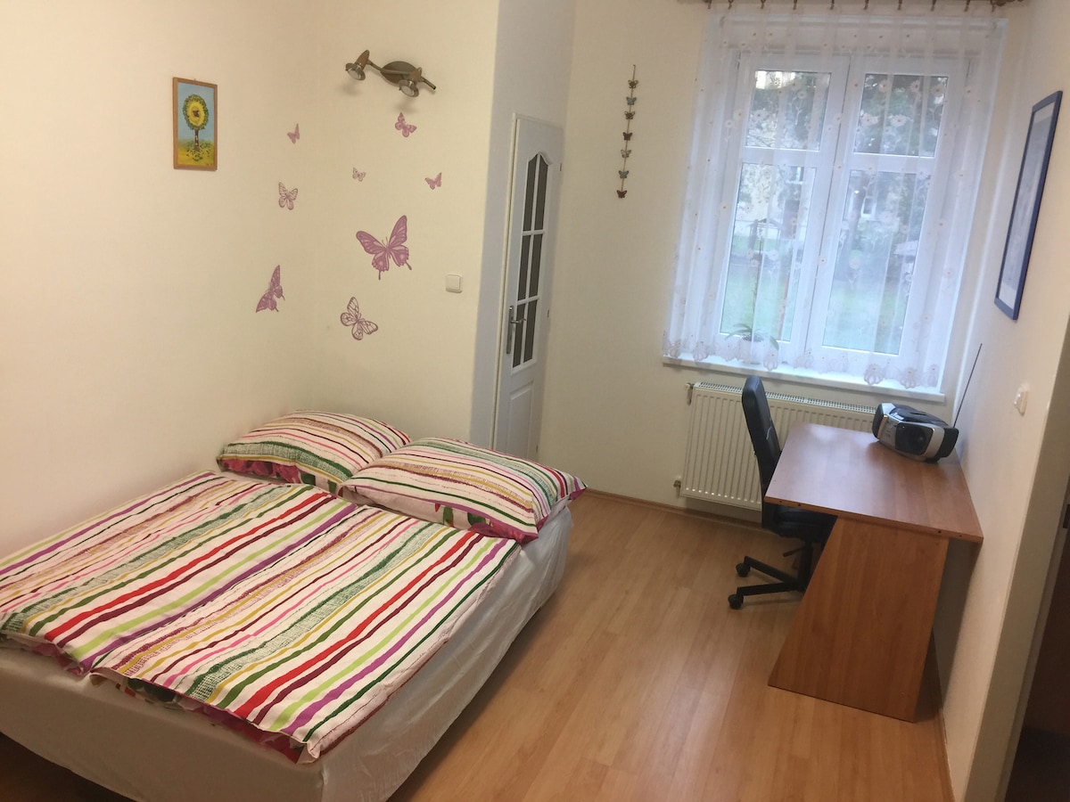 Discover the charm of Děčín in our cozy apartment that makes you feel right at home. The main train station is just 3 minutes away, offering direct connections to Dresden (1 hr) and Prague (1.2 hrs). Buses (2 min) take you to Bohemian Switzerland or Tisá Walls. We provide storage for bikes/strollers; hypermarkets and supermarkets are within 5 min. Parking by the house (paid) or 2 min free. We'll gladly recommend the best our region offers. We look forward to your visit :)