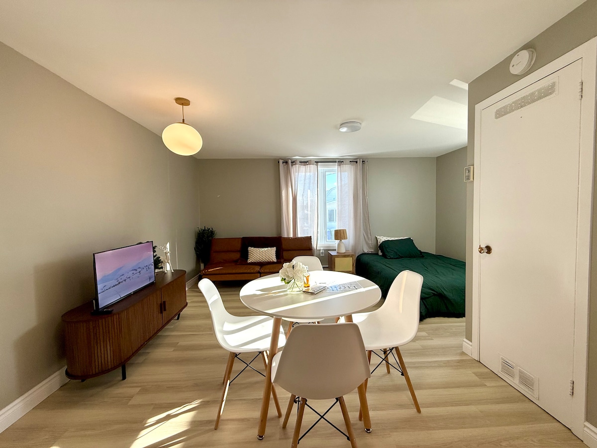 We offer everything to make you feel at home. We are also pet friendly. Enjoy your own space with private entrance, 1 bedroom (king bed) plus extra sleeping space on a queen pull out sofa. *air mattress and/or inflatable toddler bed also available for extra sleeping (by request)* Fully equipped kitchen and bathroom with full size washer/dryer. Five minutes to border crossing to Maine, USA (Fort Kent). Close to ski resorts (5 mins) and scenic snowmobile trails.