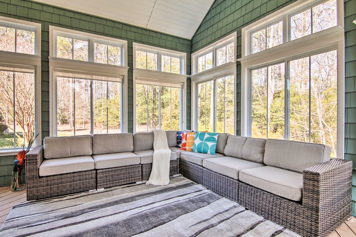 Enjoy a peaceful family vacation on the coast of Delaware at this beautiful home in Selbyville. The 4-bedroom, 3.5-bathroom vacation rental has all the comforts of home, including a full kitchen, ample outdoor space, and a convenient location near top attractions. You’ll be just 4 miles from the beach! Start your day at Fenwick Island State Park, and then take the kids to the Ocean City Boardwalk for carnival rides. For a low-key evening, relax with dinner and a drink on the screened porch.