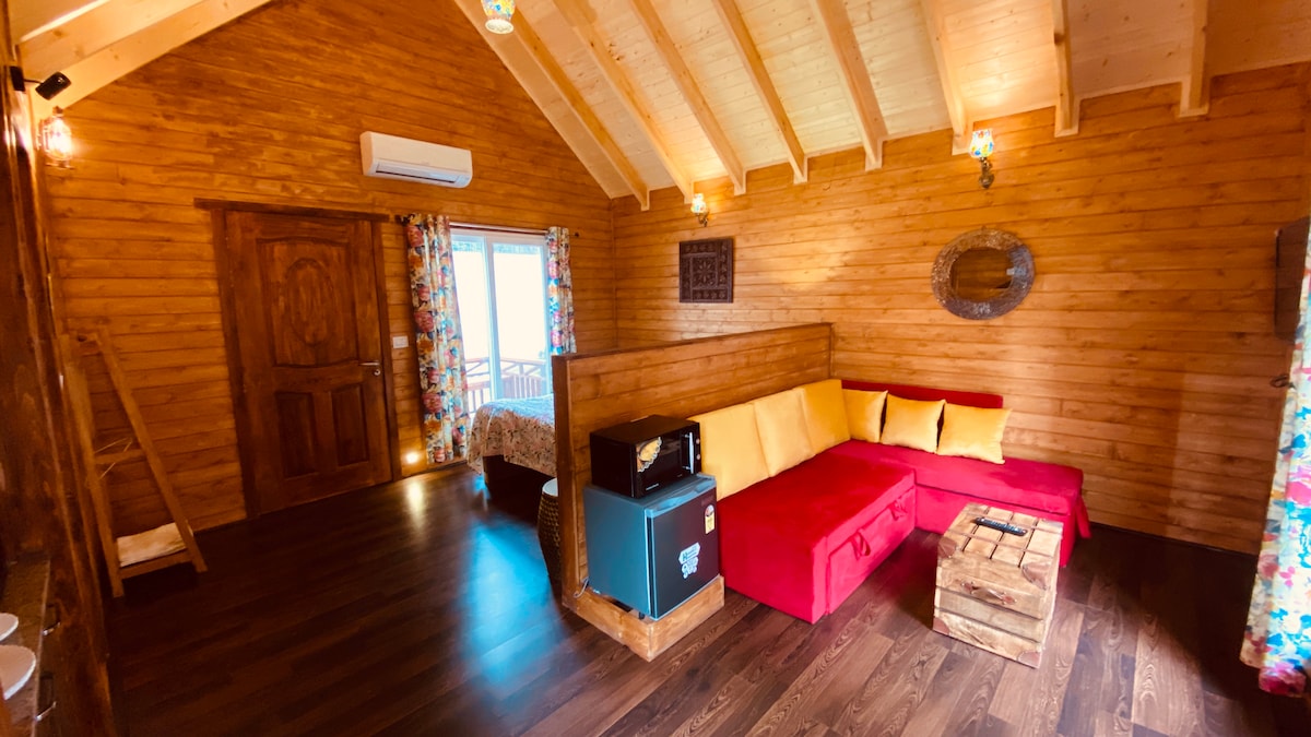 Luxurious Wooden Cottage with Plunge POOL (March to October at extra cost), personal garden and open to sky deck. Take a plunge in the pool or soak the sun in your personal space. Comfortable stay fully furnished with kitchenette, Security 24x7. Unique farm stay with Daily housekeeping. If u are looking for private luxury you have found it . So come, relax, unwind and enjoy the luxury. Discover yourself. P.S. Each cottage will accommodate 4 guests.