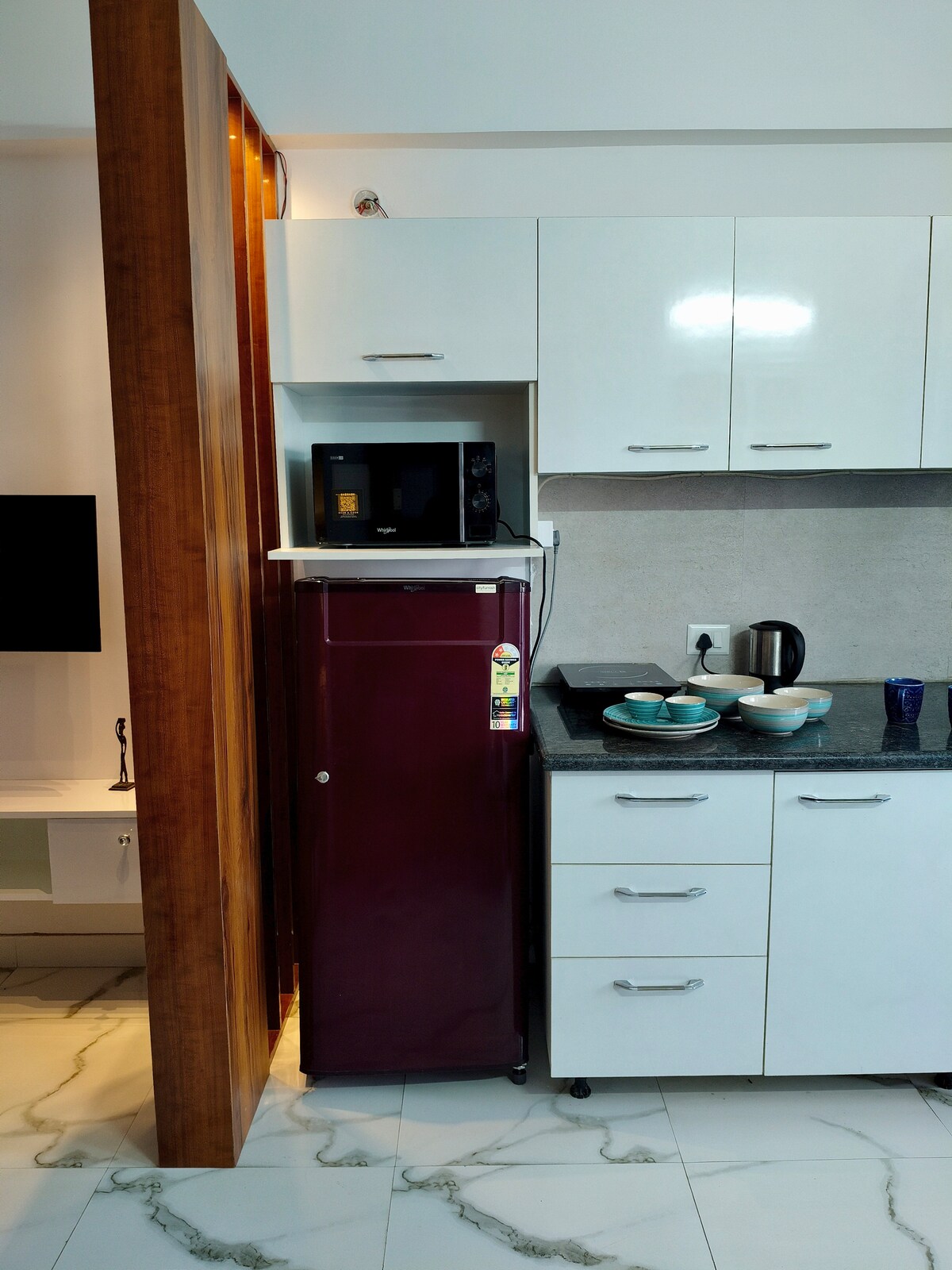 Jimmy Homes (Atithi Devo Bhava) Newly Constructed, fully furnished 2 BHK with Italian Marble Flooring, Attached Bathrooms, Free Wi-Fi, OTIS Lift, Free Parking, Both side park facing, Open Gym in the park, Split A/C's, Geyser, Washing Machine, Microwave, RO System - Free Mineral Water available for drinking and Cooking, Triple Door refrigerator, Modular Kitchen, Ultra Modern bath Fittings, Iron, Modern wardrobes, uPVC windows, Complete Sunlight in entire apartment, Led TV with DTH Connection.