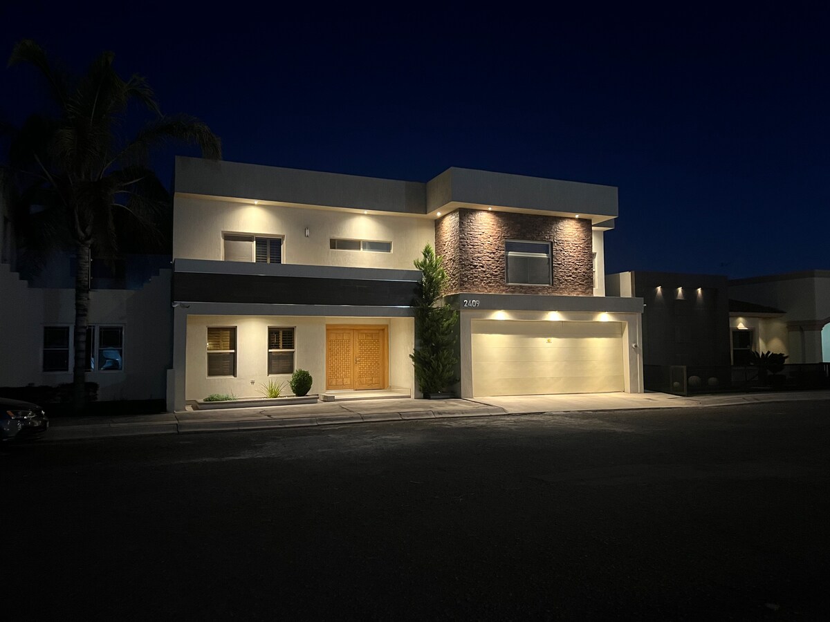 Casa Oslo is a comfortable house located in the South Sector of Delicias. It has a living room with TV, dining room, equipped kitchen and terrace to enjoy the outdoors. It has 3 bedrooms (master with private bathroom and two secondary with single beds), home office space, mini-split in each area and garage for 2 cars. Designed for families, friends, or business trips. Located near the Bicentennial Sports Center, the Desert Museum and the Baseball Stadium.