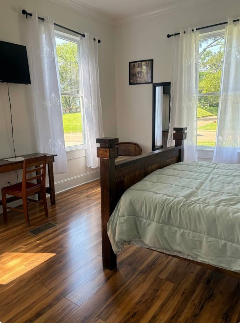 This special place is close to everything, making it easy to plan your visit. Built in 1830 and lovingly renovated for now, it’s a slice of Vicksburg’s past. The Old Courthouse museum is visible from the back courtyard and the historic downtown is just a short walk. There’s a brewery and several unique restaurants just a few blocks away in the downtown with fun shopping close by. Casinos and the National Military Park are just a short drive. Has a desk, if needed and internet provided.