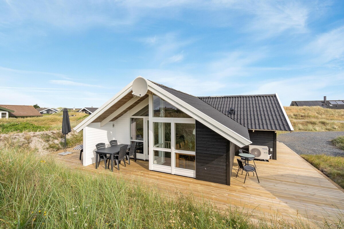New cozy summerhouse from 2009 at North Sea Denmark in the middle of very nice nature dunes and trees near Løkken and Blokhus, only 350m from beautiful beach. Many nice terrace free from wind and neighbors There’s room for hole family and nice light and nature coming via the huge windows. Everything inside house are very good quality. Nice bathroom with spa for 1-2 persons, 13m2 Activity-room. Playground and minigolf only 100m away..... Price incl electricity, water, heating etc.