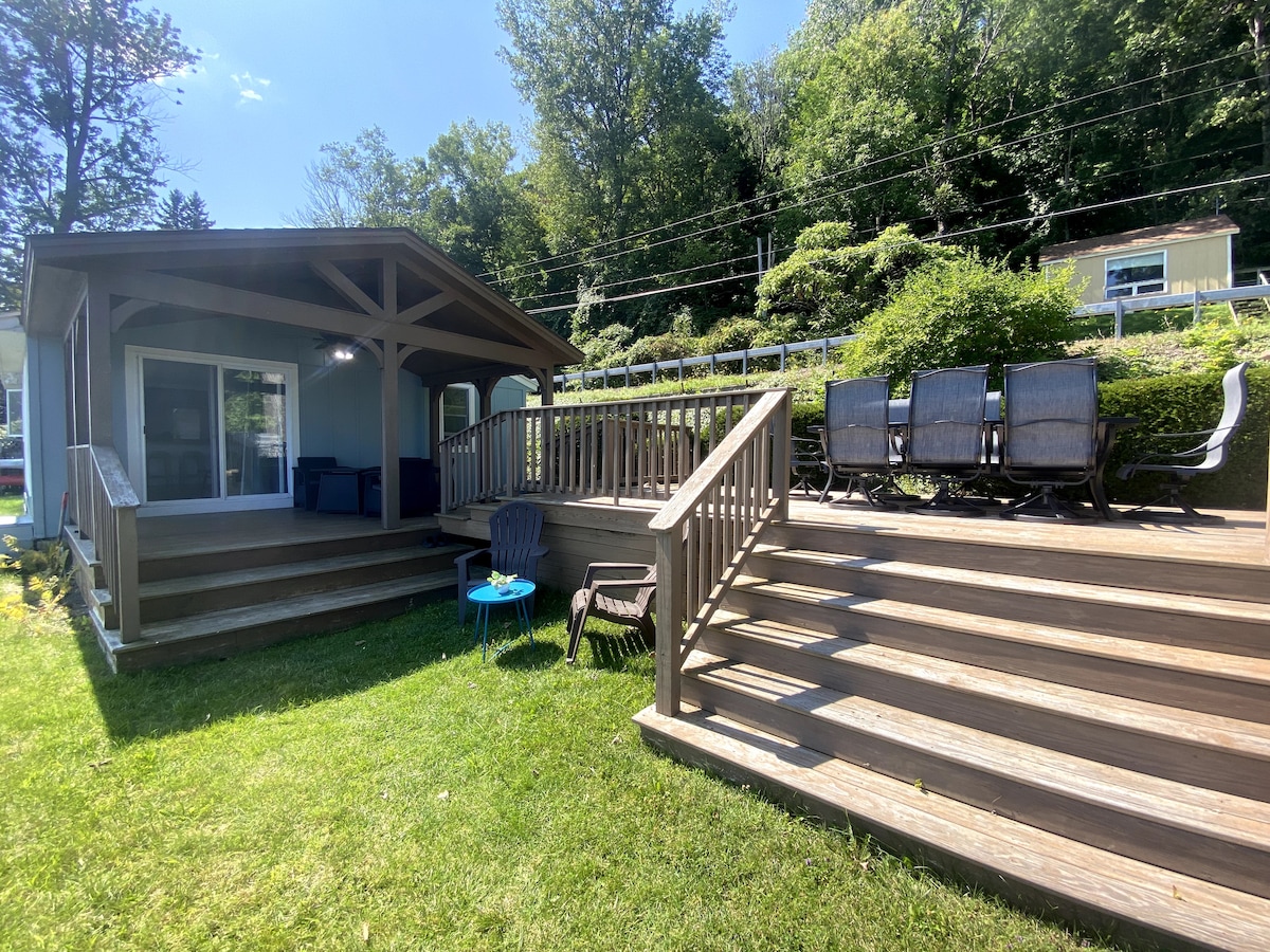 Cozy and classical central New York cottage on 70 feet of water front with fabulous view of the lake and plenty of outdoor space and seating for dining and relaxing. This newly renovated cottage is perfect for a long weekend getaway or weekly vacation for a family of up to 5. Relax, barbeque, swim, paddle board, hike (3 waterfalls within 20 mins), fish, boat, ski, kayak, fireside chat, etc. while staying in this beautiful location.
