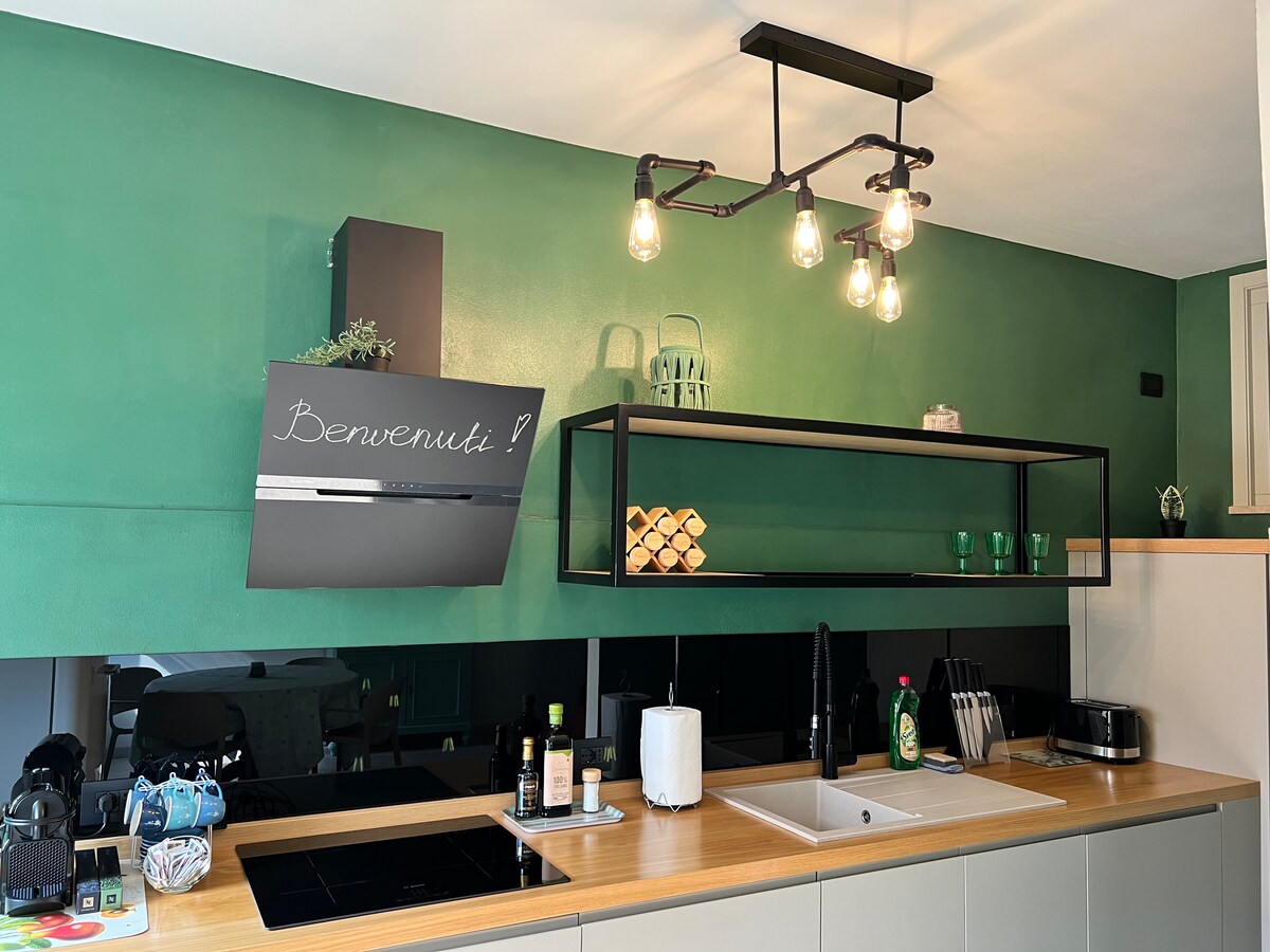 Garda Tranquil Escape - perfect place for autumn and winter holidays, a cozy retreat just a 10-minute walk from Lake Garda, lovingly created by us! Discover this charming apartment in a condo with a swimming pool and private gardens. It’s conveniently located close to Lake Garda, a children’s playground, and a supermarket. You’ll have easy access to the historical centers of Desenzano and Sirmione (12’ by car). Enjoy free parking (indoor and outdoor), with bus stops just 5’ away