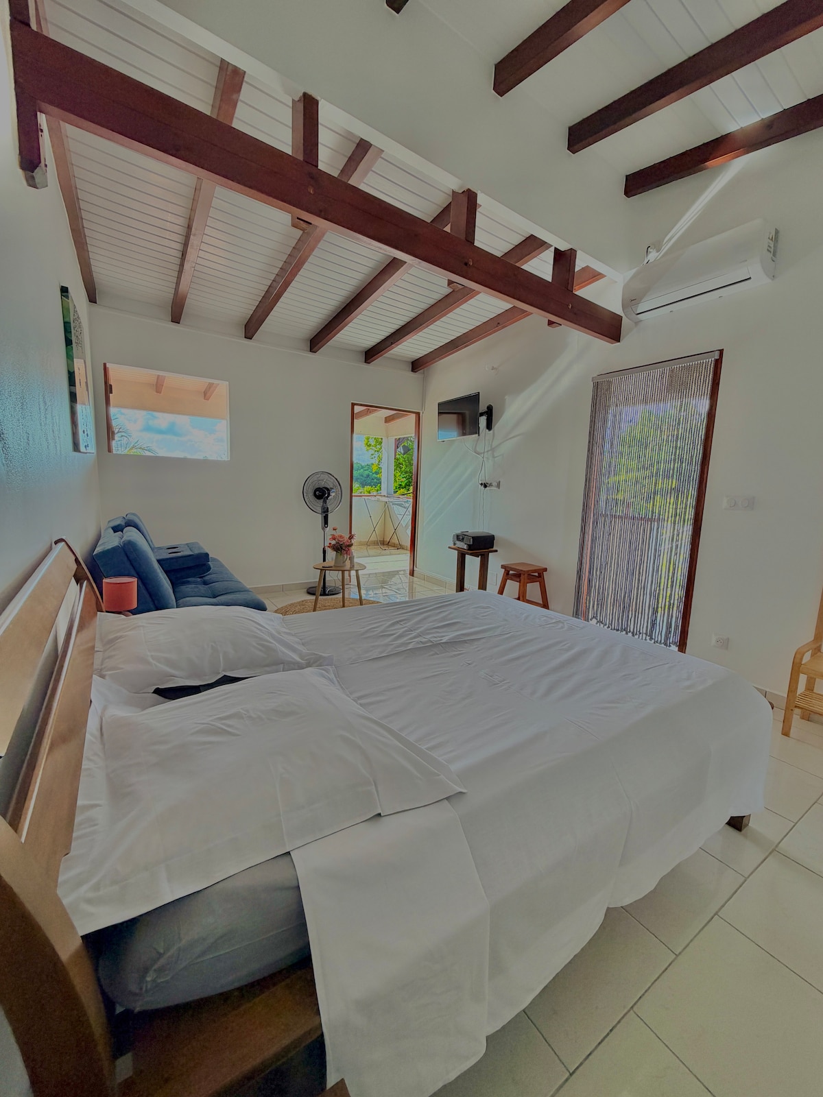 Pick bananas and cherries every morning for your breakfast, in the lush garden of this magnificent gîte open to nature. Very comfortable and air-conditioned, king-size bed. In the landscaped garden you can watch hummingbirds... Small surprise, we won't tell you more!!! Located in the heart of the Guadeloupe National Park, classified as a UNESCO World Heritage Site, the cottage allows you to combine relaxation with the nearby beach and discovery of the rainforest