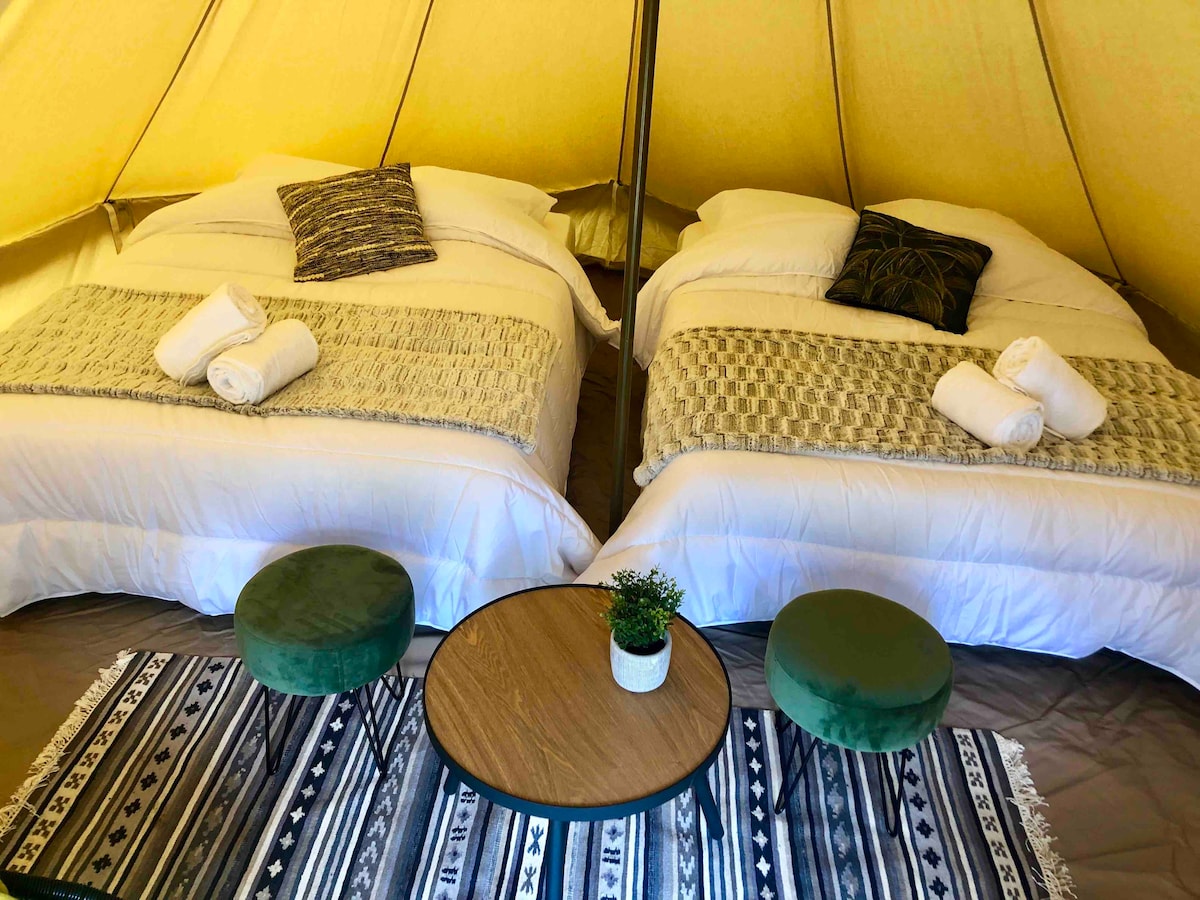Ultra cozy 16 m² nest, in the heart of our estate, discreetly set under the trees, on a rocky promontory overlooking one of the ponds. Push the door and discover its superb chestnut dome frame, its ideal intimacy, and its atmosphere that is both country and romantic to spend an unforgettable time together. Double bed, breakfast area; kettle, coffee maker, tea and coffee available. Toilets and showers in the campsite's sanitary block, nearby. Sheets optional.