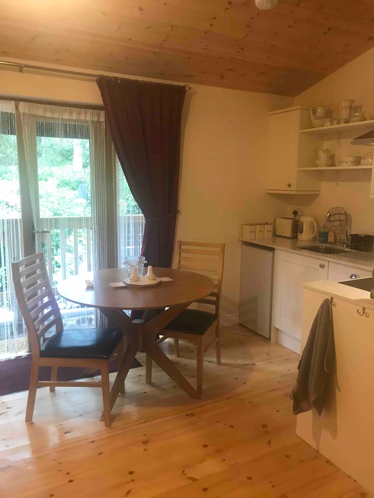 Comfortable self contained one bedroom log cabin located in 2 acres of amazing landscaped gardens and woods on the river Lyhner. This beautiful location will take your breath away. The sound of the river and the birds will bring you peace and tranquility. Relax and enjoy the extensive gardens next to the river at your leisure. Balcony with armchair and bar stools and private picnic area. The Manor House pub is a five minute walk for those wishing to dine out. Perfect for The Green wedding venue