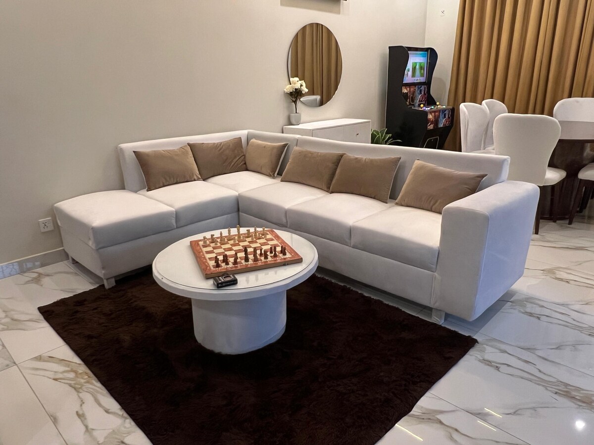 Experience contemporary luxury in our Modern Boutique House located in the DHA Phase 5, Lahore. Enjoy expansive living areas, tastefully decorated bedrooms, a fully equipped kitchen, private terraces, and an exclusive in-house Gym. Conveniently located just minutes from Lahore’s finest dining, upscale shopping, parks, LUMS, Gulberg, Raya, Airport, Ring Road and more, this elegant residence is ideal for families, groups, and especially foreigners seeking comfort, security, and Luxury living.