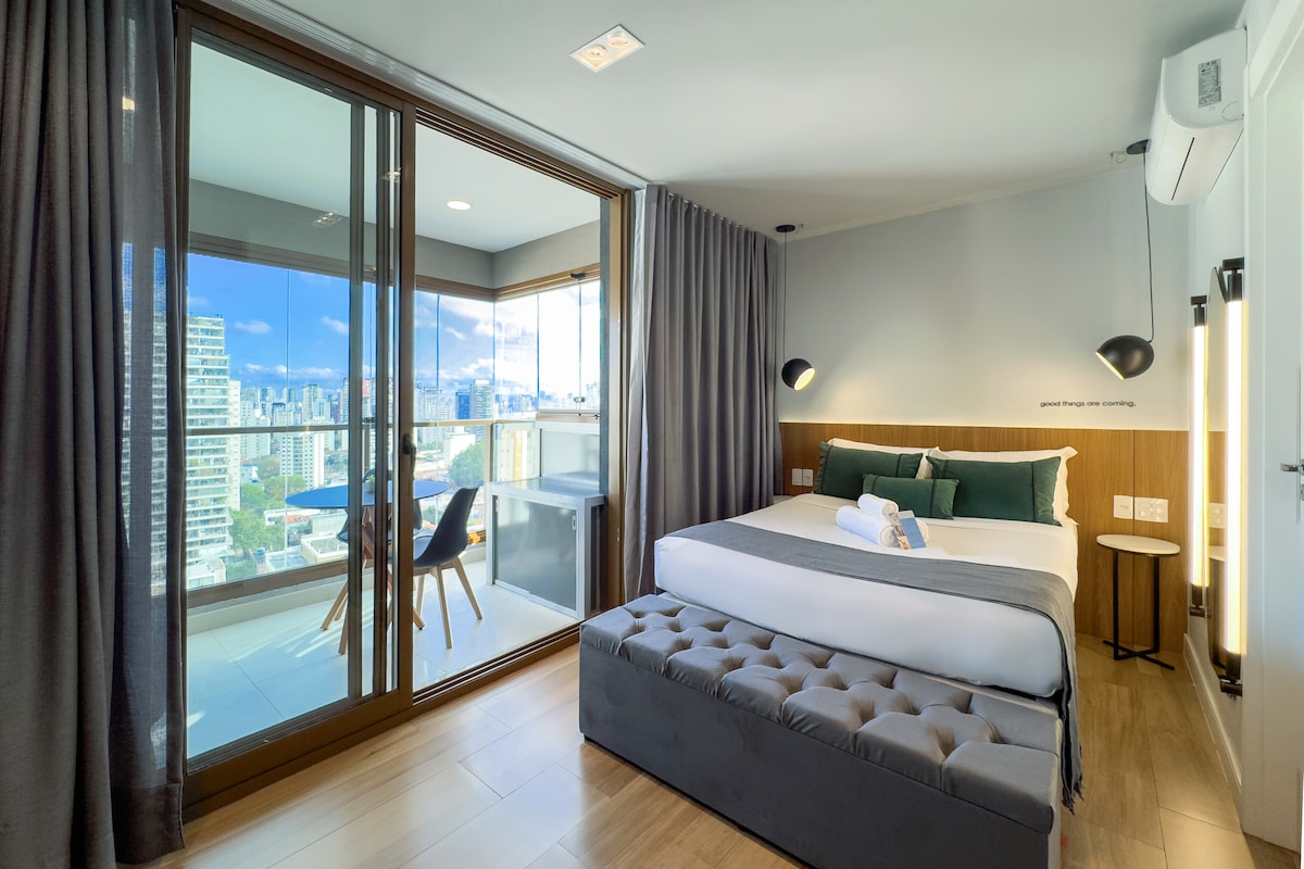 We renovated NYC BERRINI following the success of our One Eleven apartment, Vila Olímpia. Modern duplex on R. Sansão Alves dos Santos, 56, 13th, with a great view of the Pinheiros River. Ideal for those seeking comfort in São Paulo. Guests rate the experience above average! Amenities: Queen bed, sofa bed, 55" Smart TV with Alexa, 500 Mbps Wi-Fi, air conditioning, closets, 2 minibars, Illy coffee machine, and daily housekeeping. Includes pool, sauna, and is near restaurants, shops, and transport.