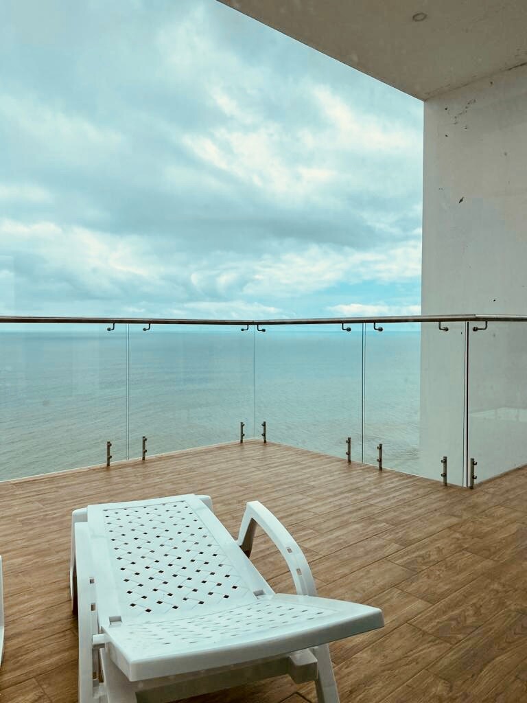 Located in Tonsupa, we offer quality accommodation, the apartment has a balcony overlooking the ocean. It has 2 bedrooms, with capacity for 6 people, fully equipped kitchen, television, cable, internet and air conditioning. The balcony has a jacuzzi and a dining table to enjoy the best view. There are two swimming pools, one outdoor, with a children's play area, and another indoor and heated, with 4 whirlpools, sauna, Turkish bath, gym, multiple courts and mini-golf.