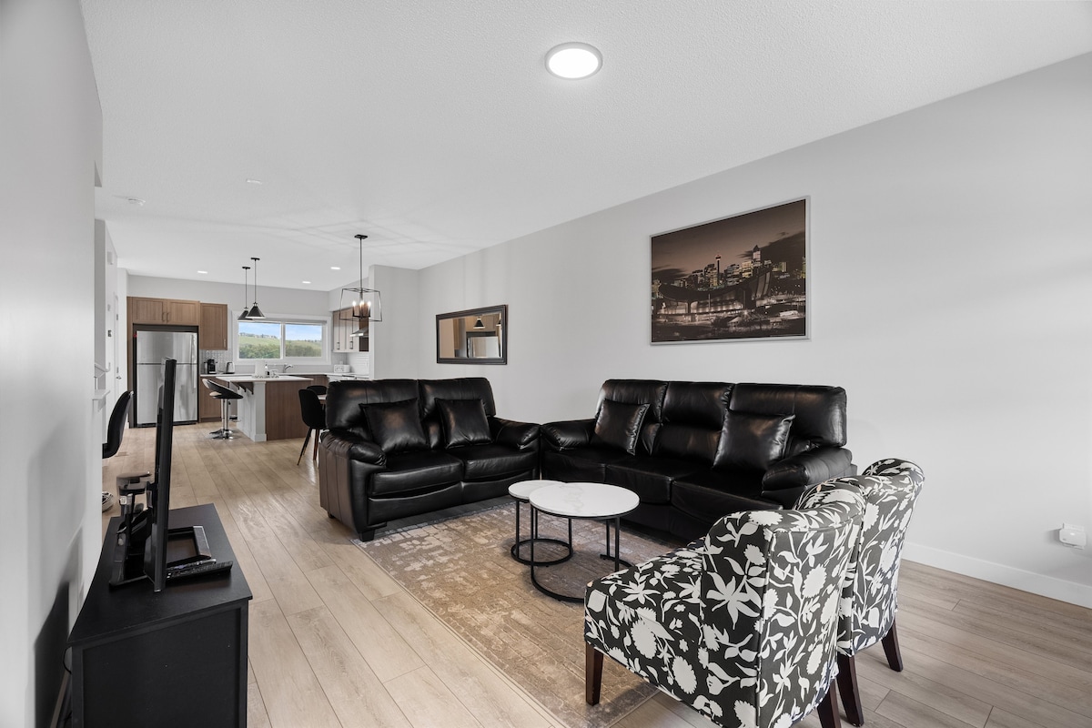 Welcome to your perfect vacation home in Calgary SE! This fully licensed, spacious & cozy 4-bdr( 2 King+ 2 Queen beds,), 3.5 bath home is the ideal escape for families, solo travelers, or groups looking to explore YYC, Canmore or Banff, relax & recharge. Located just 5 minutes drive from the Chaparral lake, this home offers lake access for summer and winter fun, a fire pit for evening gatherings, Traeger BBQ, indoor fireplace, Smart TV & fully equipped kitchen with high quality appliances.
