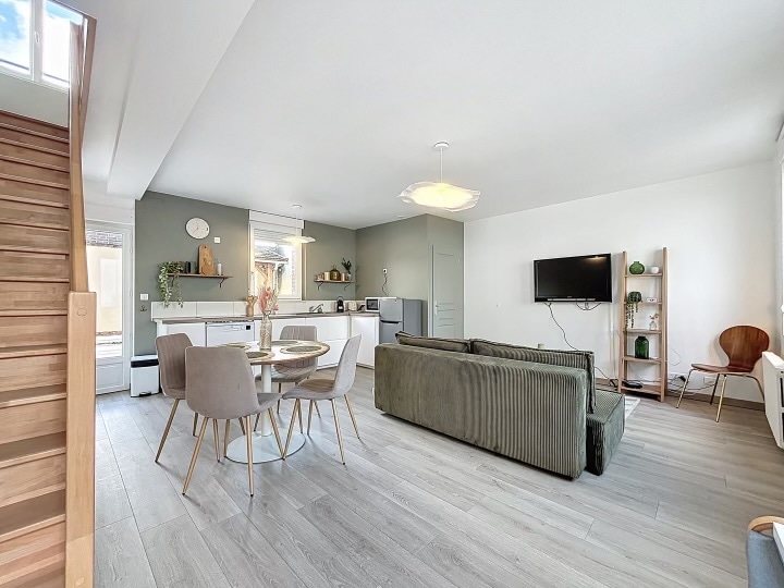 130 m2 loft located in a former factory from the early 20th century. Glass roofs and metal structure. 2 min walk to the SNCF train station and 5 min to the city center. Quiet, very bright, lots of charm, covered terrace. 1 bedroom (with air conditioning) + extra bed in the living room (sofa – 1 person). Secure basement parking. Bikes available. Possibility of personalized welcome (groceries/champagne...) Note: Heat possible in summer because of the canopies / windows without shutters n.10387000273CE