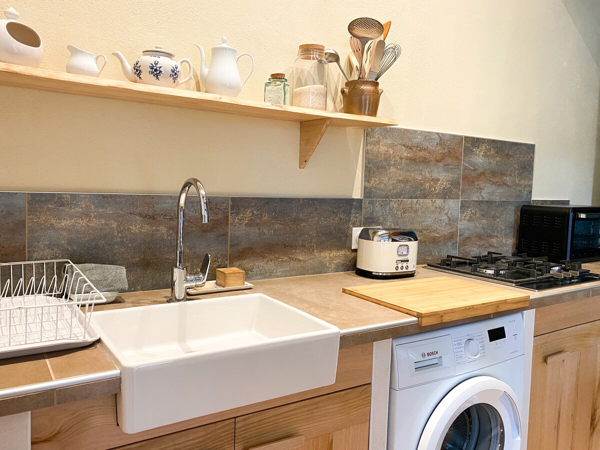 Studio calme avec terrasse arborée et vue sur jardin à 5 min à pieds du centre du village. Offrez-vous une parenthèse de calme dans ce studio apaisant, idéalement situé à 5 minutes à pied du centre du village, tout en bénéficiant d’un environnement verdoyant et silencieux. Le logement dispose d’une terrasse extérieure arborée et de plain-pied, indépendante, avec vue sur un jardin verdoyant, parfait pour se détendre après une journée de balade ou de travail.