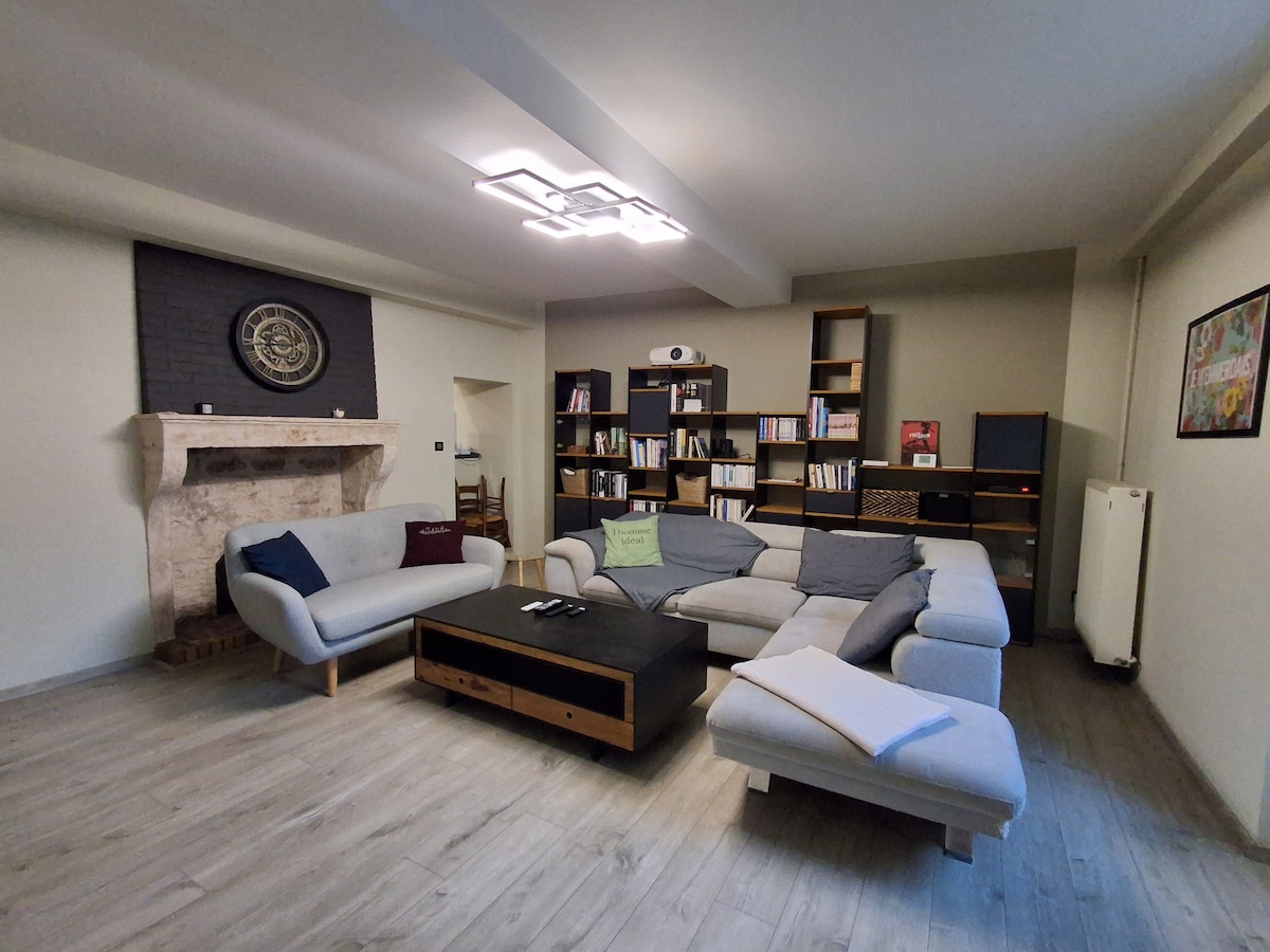 Quiet and spacious 120 m² apartment. In town, a 5-minute walk to the center Comfortable with quality bedding size 180 x 200. Sleeps six with two bedrooms and a 140 x 190 convertible sofa bed. - 1st bedroom: double bed - 2nd bedroom: two single beds or a double bed Parking at the foot of the accommodation with 2 private spaces. Provision of a "mini service station" garage with electric charging station (Free on the 1st day, then €10/night) Tire inflator and vacuum cleaner.