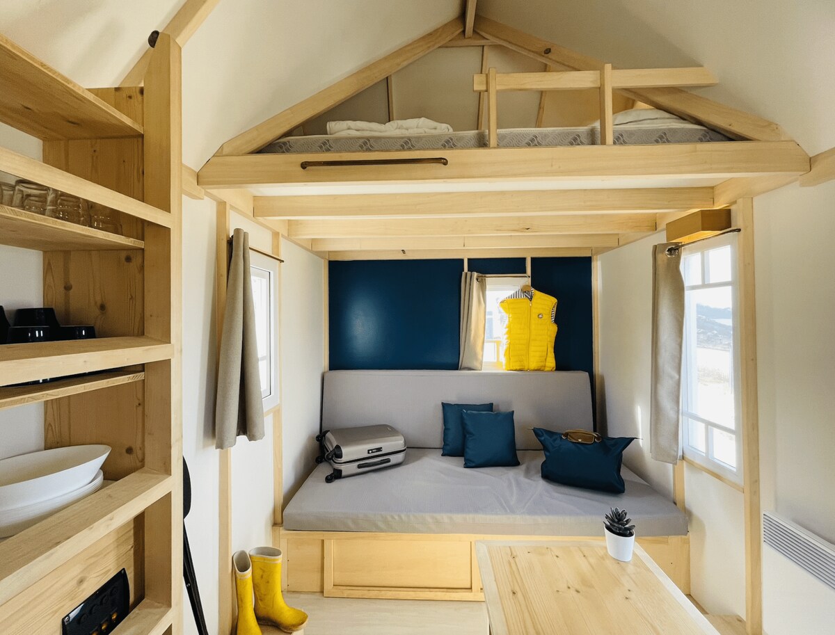 Trailer built by us with aesthetics inspired by a submarine. Equipped with a double bed on the mezzanine (access by ladder) and 2 benches that can be used as extra beds for 2 children. Please note: - pond nearby = real danger for small children! - not accessible to PRM - dry toilets - shower cubicle - equipped kitchen - beach 10-minute walk (11 beaches on the peninsula)