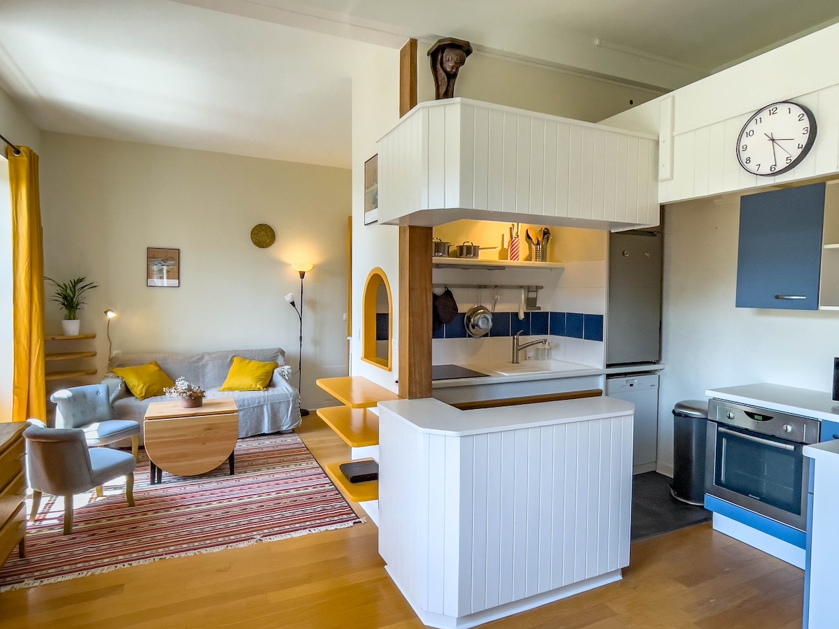 This beautiful and bright apartment of 50 m² is located in the heart of Dinard, in front of the casino with direct access to the beach of L'écluse. The apartment can accommodate 2 people. It is perfectly equipped for a comfortable stay: household appliances, kitchen utensils, dishes; washing machine with dryer, a hair dryer, and Wifi. Cleaning costs are included in the price and include all household linen (sheets, towels, bath mats, tea towels).