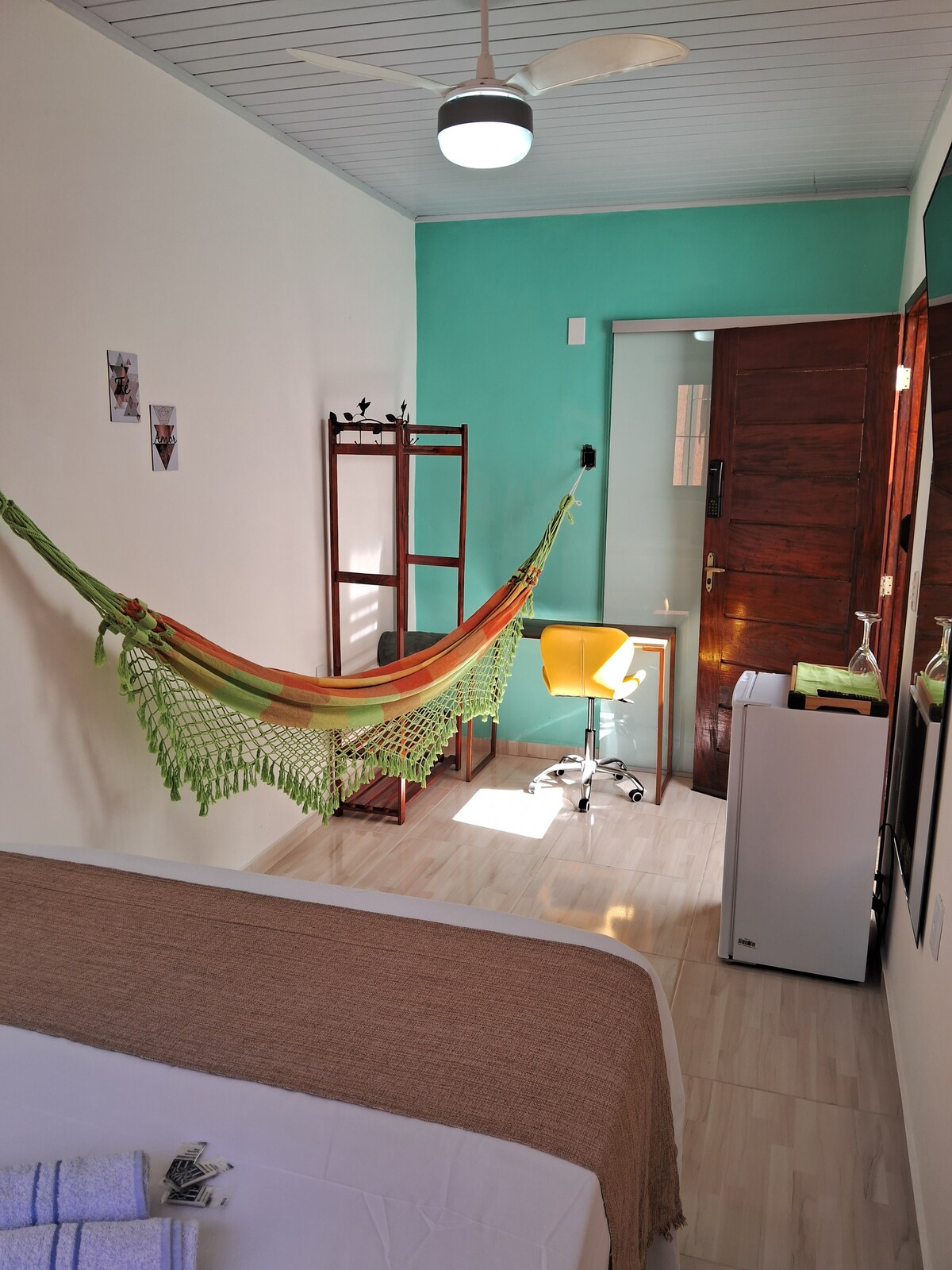 Stay in a cozy suite full of personality, located in the most charming and colorful alley of Porto Seguro, right in the heart of the famous Passarela do Álcool. The suite is designed to offer a comfortable stay, whether for couples, leisure or business travellers. Located in a central and lively area, the accommodation is close to bars and restaurants, and there may be movement and sounds until midnight, especially during festive periods.