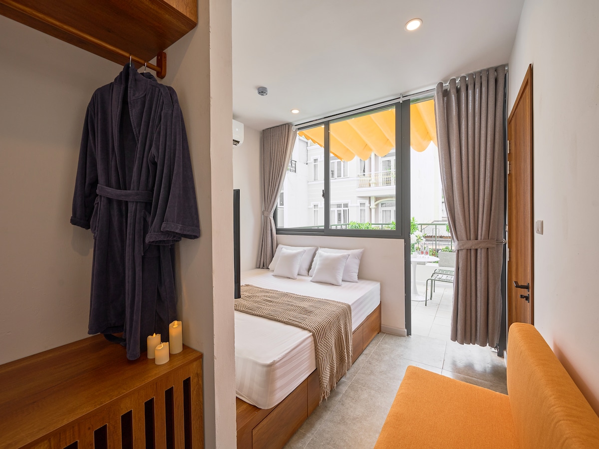 Discover the perfect city escape in the heart of Ho Chi Minh City! Just minutes from major attractions, this spacious studio is surrounded by trendy cafés, local eats, and shops. Stroll through a safe, vibrant neighborhood by day or night. Enjoy free parking, on-site laundry, and a cozy kitchen stocked with coffee, tea, and essentials—everything you need for a relaxing, memorable stay.