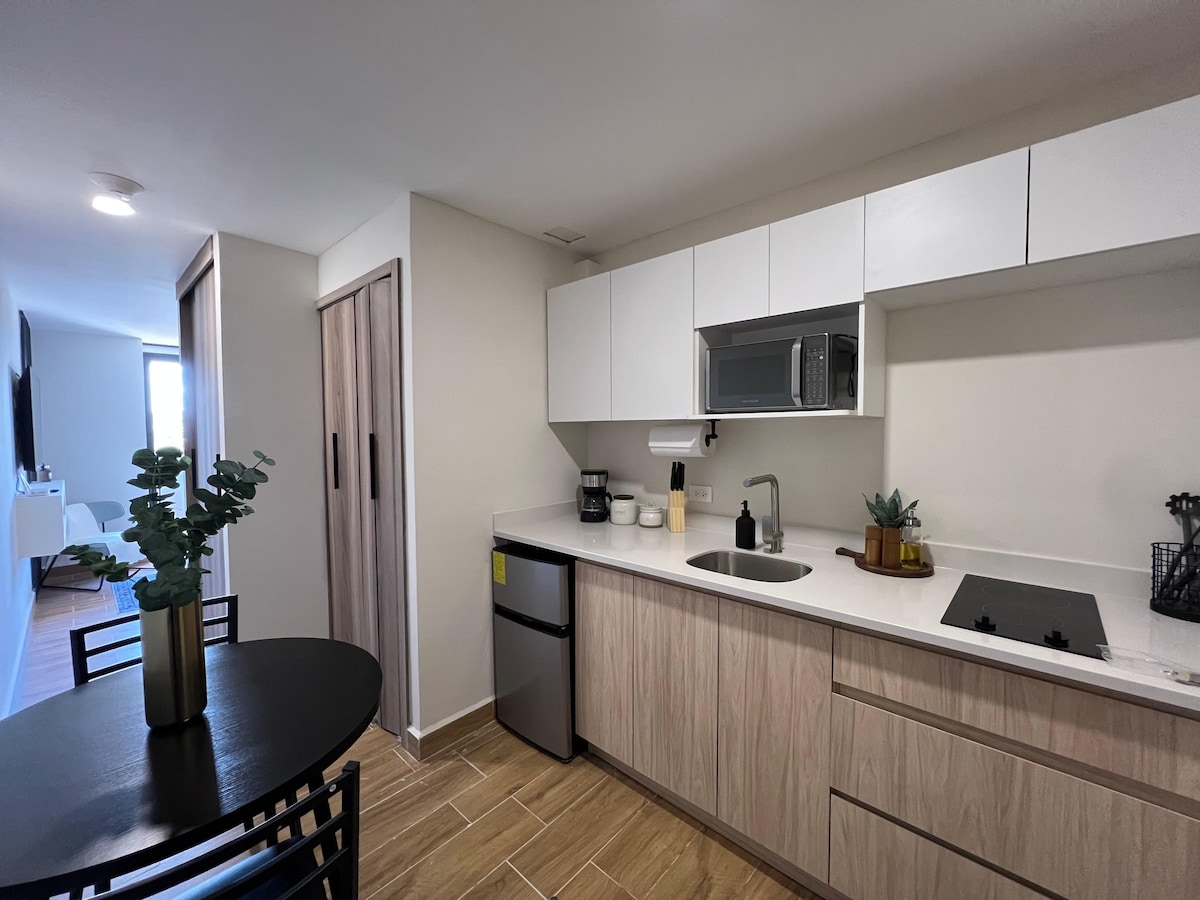 A 20 square meter studio apartment strategically located in Boulevard Morazán, allowing you access at a 2 minute walking distance the new U.S. Embassy, fast food restaurants, and a shopping center. Agalta 411 is suitable for both short and long-term stays. Stay with us in the heart of Tegucigalpa with an unbeatable location, top notch security, and fantastic shared spaces within the building. Stay securely and comfortably with all amenities within your grasp.