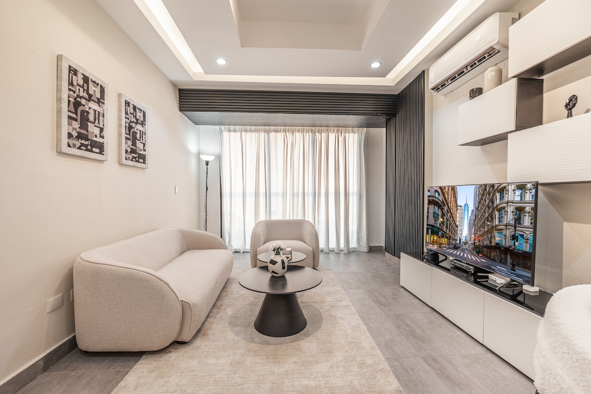 Welcome to our luxurious modern apartment! Featuring sleek design, marble finishes, and floor-to-ceiling windows with stunning city views, this space offers comfort and style. Relax in the spacious living area with a large TV, enjoy meals in the elegant dining space, and unwind in a cozy, upscale atmosphere. Thoughtful details, contemporary lighting, and plush furnishings make this the perfect retreat for travelers seeking sophistication and relaxation. Your ideal getaway awaits!