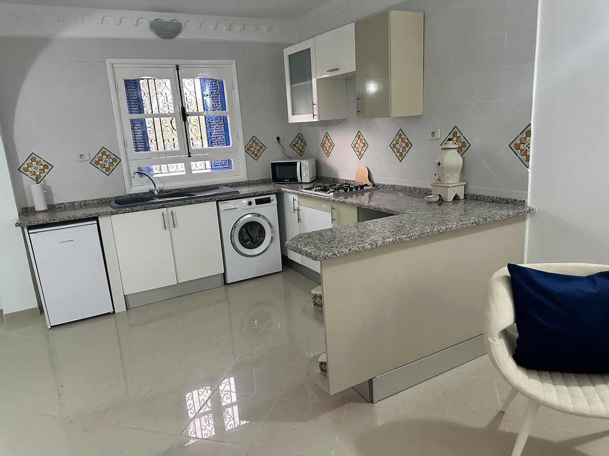 Peaceful country house in Djerba, ideal for experiencing the island differently. There is no mass tourism here: calm, authenticity and freedom. Two bedrooms, living room with kitchenette and simple living at the local pace. Supermarket within walking distance, Houmt Souk and Djerbahood nearby. Car recommended but taxis possible. Meals and breakfasts on request. Welcome by a Franco-Djerbian couple, for sincere local advice and a truly different experience.