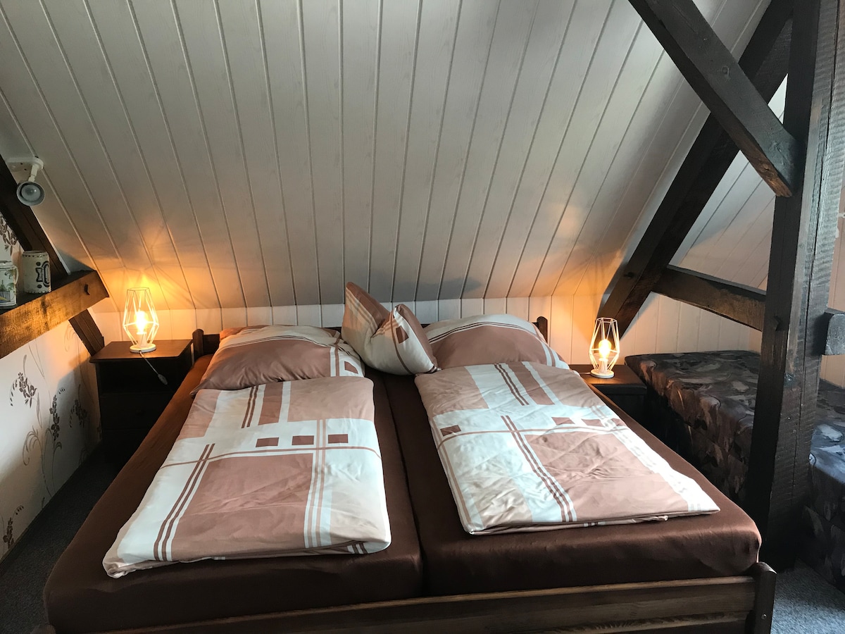 The guest apartment is located in the completely newly converted attic of our house. It includes a living area with kitchen, 2 bedrooms and a large bathroom. The nearest supermarket is less than 1 km away and the bakery is only a 2-minute walk. If necessary, a bread roll service is possible on Saturdays. Riesa is located approximately midway between the cities of Leipzig and Dresden directly on the beautiful Elbe. The Elbe Cycle Path is about 3 km away.