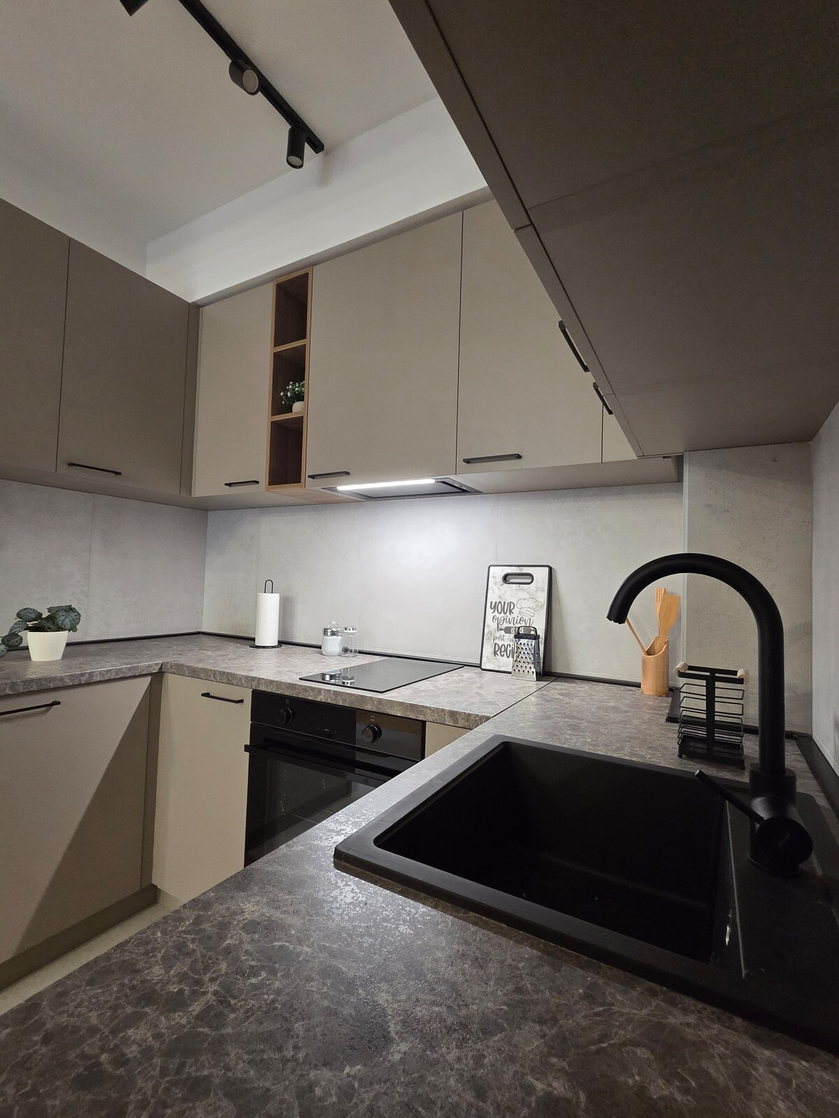 Modern, one-bedroom apartment with balcony, fast Wi-Fi, A/C and free parking. Easy walk to the Main Square, Old Bazaar, malls, cafés & restaurants. Perfect for digital nomads and travelers who can enjoy stylish, clean and peaceful stay! Sleeps 3 (queen + sofa bed), with full kitchen (oven, stove & dishwasher), bathroom (shower, washing machine, towels) and balcony. ✈️ We offer airport transfers for extra comfort (additional cost). Stay 10+ nights get one-way free, 14+ nights both ways free!