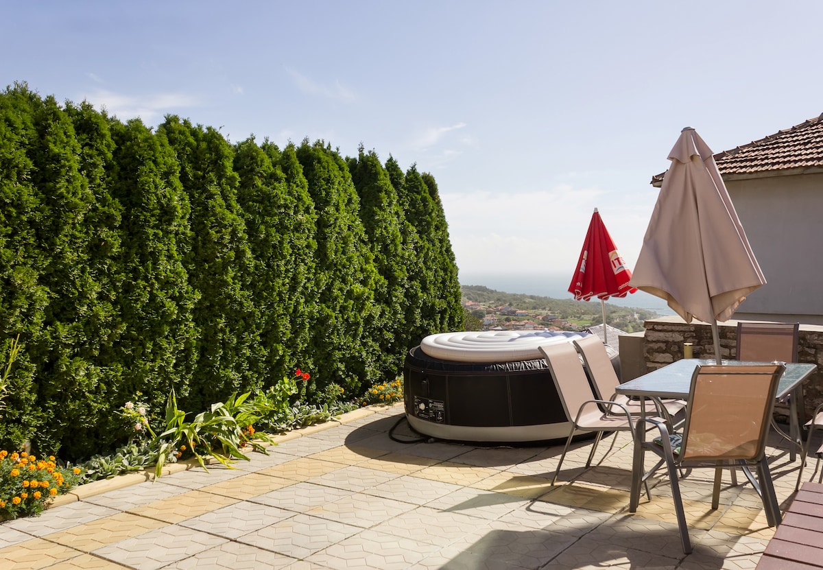 Villa Aura is a design 3 bedroom villa in the village of Rogachevo with a magnificent view to the sea and the nature reserve Baltata near Albena. It is a excellent starting point either to be on the sandy beaches of Kranevo and Albena, or to visit coast gems such as Cape Kaliakra or the town of Balchik. The villa is suited best for 6 adults and 4 children. ***New outdoor jacuzzi zone - season 2026***