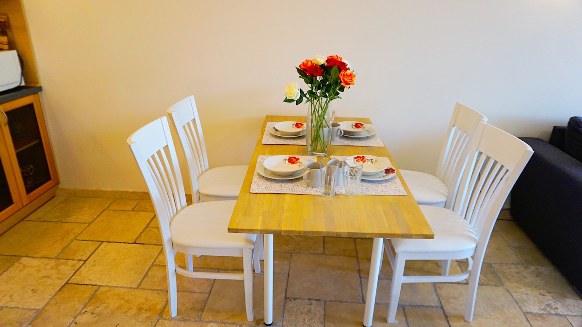 Bring the whole family to this great accommodation with plenty of space for fun and entertainment. The holiday home is located on a large plot of land on a little-used asphalt road. A pool is available in the summer months and there is enough space all year round to play and run around or simply to rest, relax and switch off. The accommodation was renovated and renovated in 2023, equipment is new and clean. Additional storage space available for long term guests.
