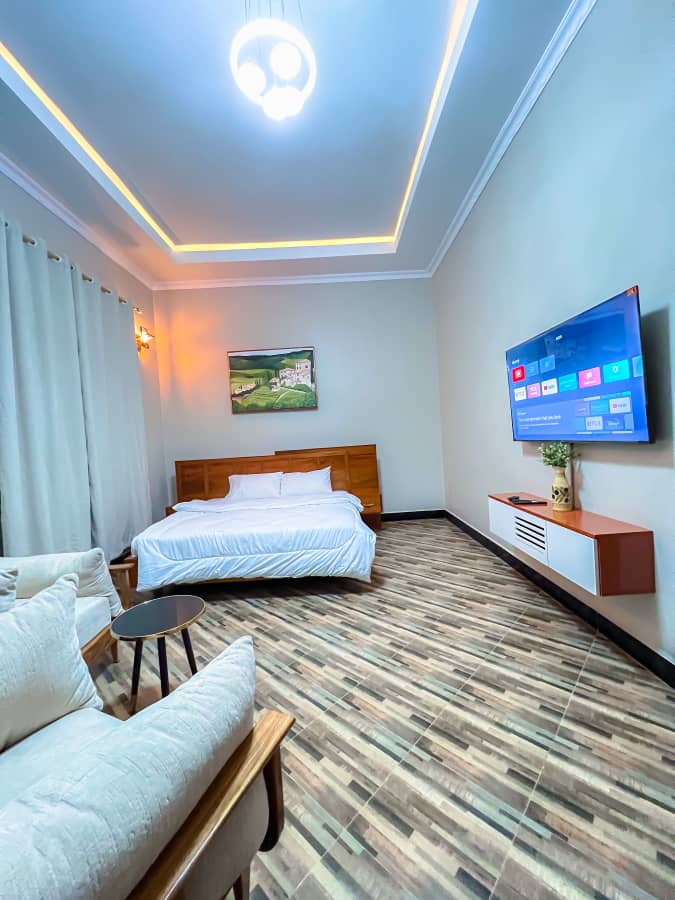 Welcome to Cool Stay Apartments in Nzuguni, Dodoma Six identical, fully furnished 2-bedroom homes designed for comfort and peace. Enjoy free breakfast, Wi-Fi, laundry, air conditioning, and daily cleaning. Relax in a modern space with Hisense TV, soundbar, and kitchen. Free pick-up, 24/7 security, and a local guide make your stay easy and unforgettable.
