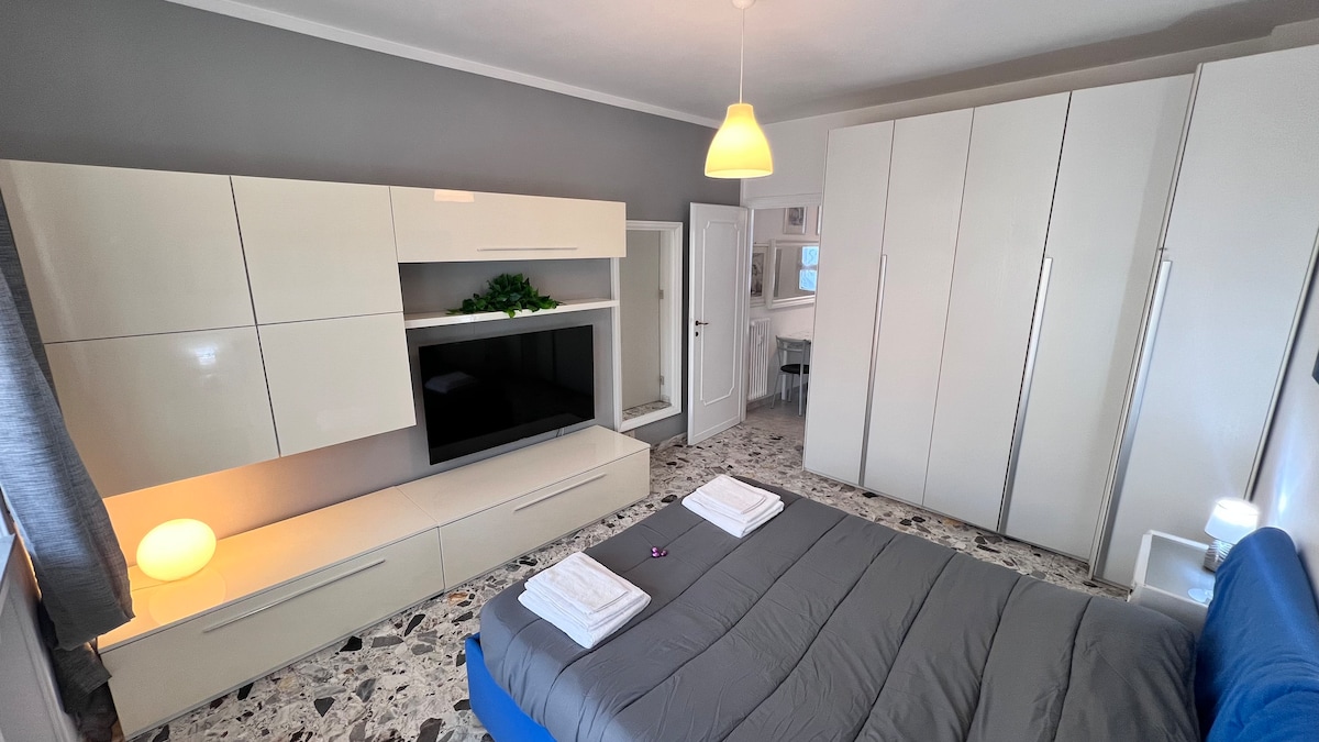 The apartment is in the center of Sanremo on a street with shops, bars, supermarkets, pharmacy, gym, tobacconist and post office. Extremely convenient to get to and with several free parking lots 10-minute walk to the Ariston Theater, Casino, old port, beaches and bike path Available: 1 bedroom (double bed) (1 additional cot) 1 fully equipped kitchen 1 bath Large terrace - tourist tax to be paid on-site at the property €1.50/night/person