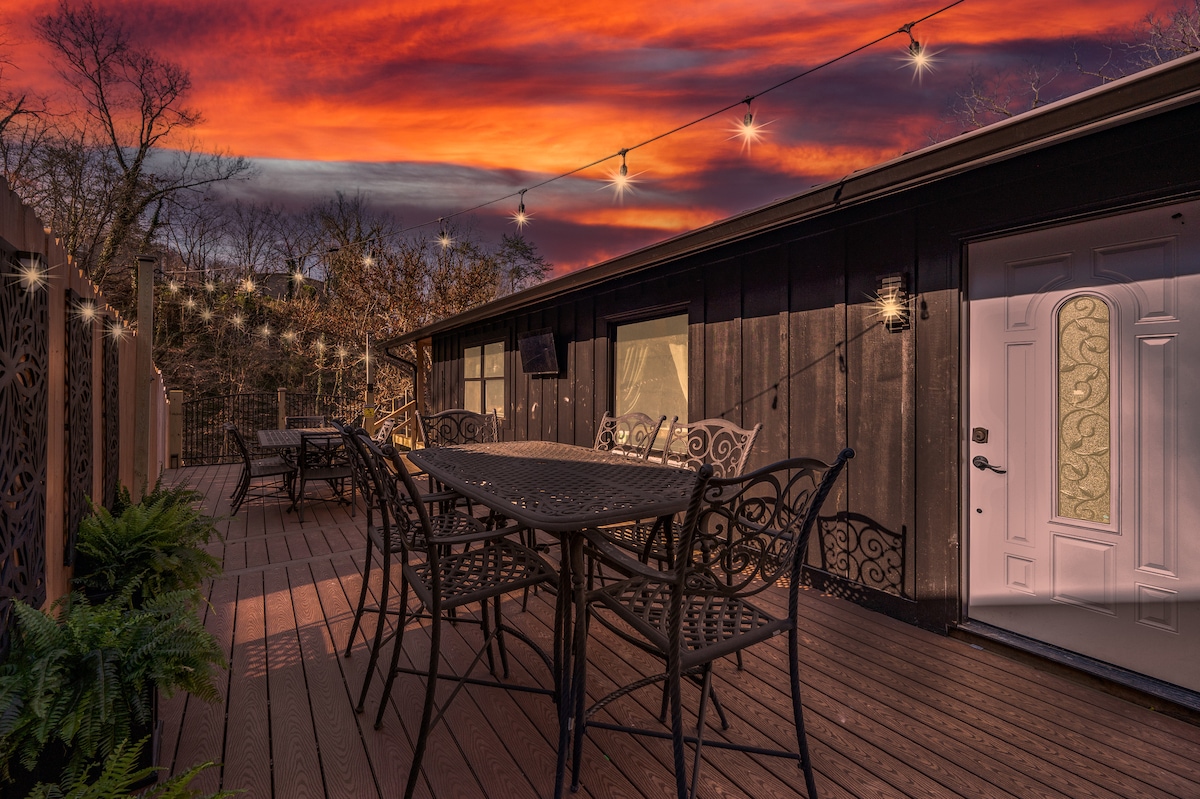 GREAT LOCATION- WELCOME TO CLOSE TO DOLLY! 3 bed 2 bath home 1/2 mile from Dollywood. Each room has its own smart TV just put in your info and it’s ready to go. You can sit in the spacious living room and watch a movie as a family or go out to the deck and look at the views. During summer season you can watch Dollywood’s Sweet Summer Nights 3D drone and firework show from the deck. If it’s raining out, you can enjoy the covered porch and play cards or board games. Plenty of parking on site.