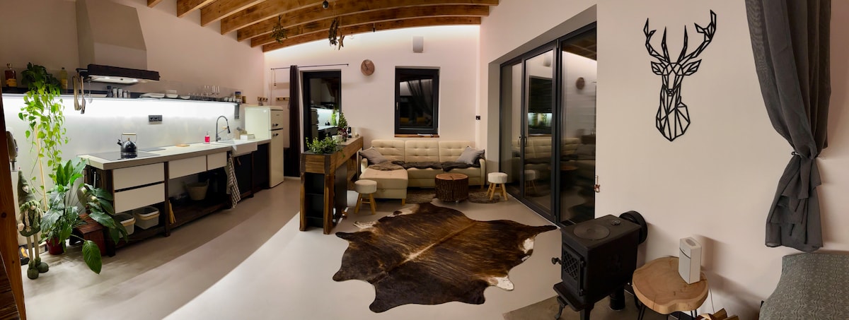Immerse yourself in the magic of a hundred years of history in our apartment, which is located in Hlušovice near the pond, in a picturesque village just 10 minutes from Olomouc center. We offer a cozy living room with a fully equipped kitchen, four comfortable bedrooms, two modern bathrooms, a terrace with outdoor seating, and a large garden. Ideal for families with children as well as demanding guests who value space and a higher standard of comfort.